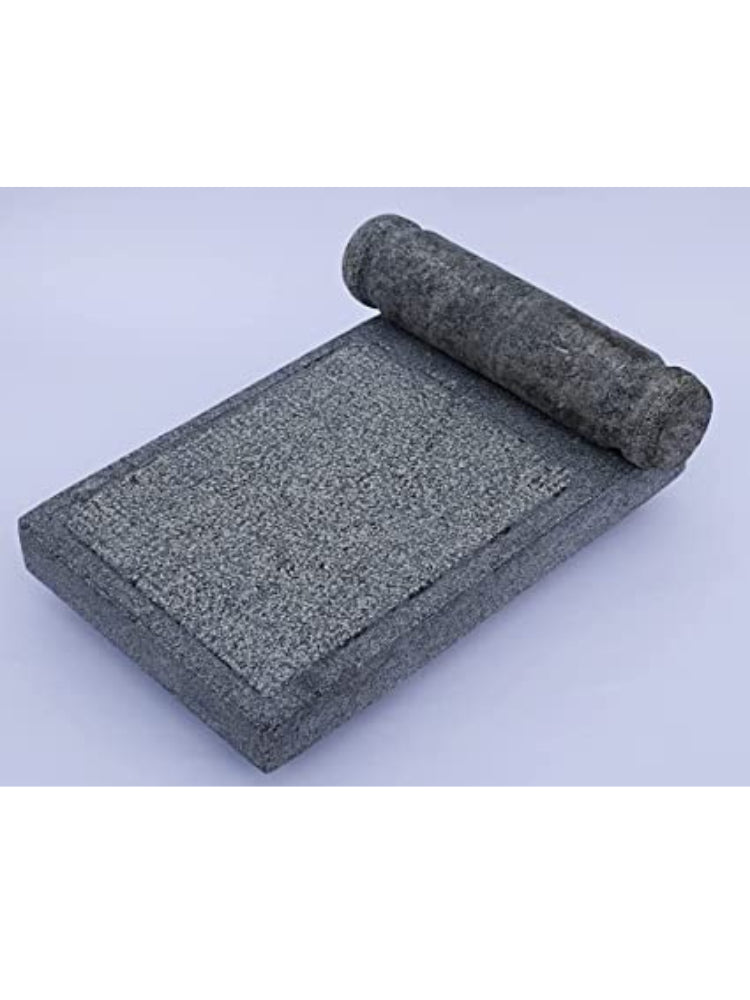 Ammi kal, also called Sil Batta a traditional grinding stone, Is used for wet grinding the masalas and Chutney. One of the main reason to use Ammi Kal is , The masalas retain the nutrients as they are not heated during the grinding. This product has been designed with a size and dimensions to place it on the kitchen counter top and easier to handle .