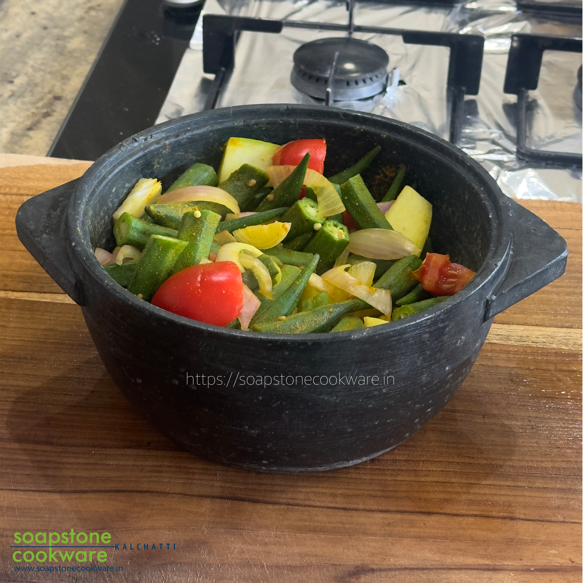 We at Soapstonecookware-Kalchatti,(our Brand)ensure quality control in choosing the right stone, selecting the Right artisan, finishing to the finest level, Season the cookware authentically for 6-8 months and package & deliver with high standards.We have designed the cookware to cook on Gas stove,Coil stove,Hot plate & on firewood.Our cookwares are designed to keep inside the Refrigerator.Our products are sutiable to cook both vegetarian & non-vegetarian dishes.