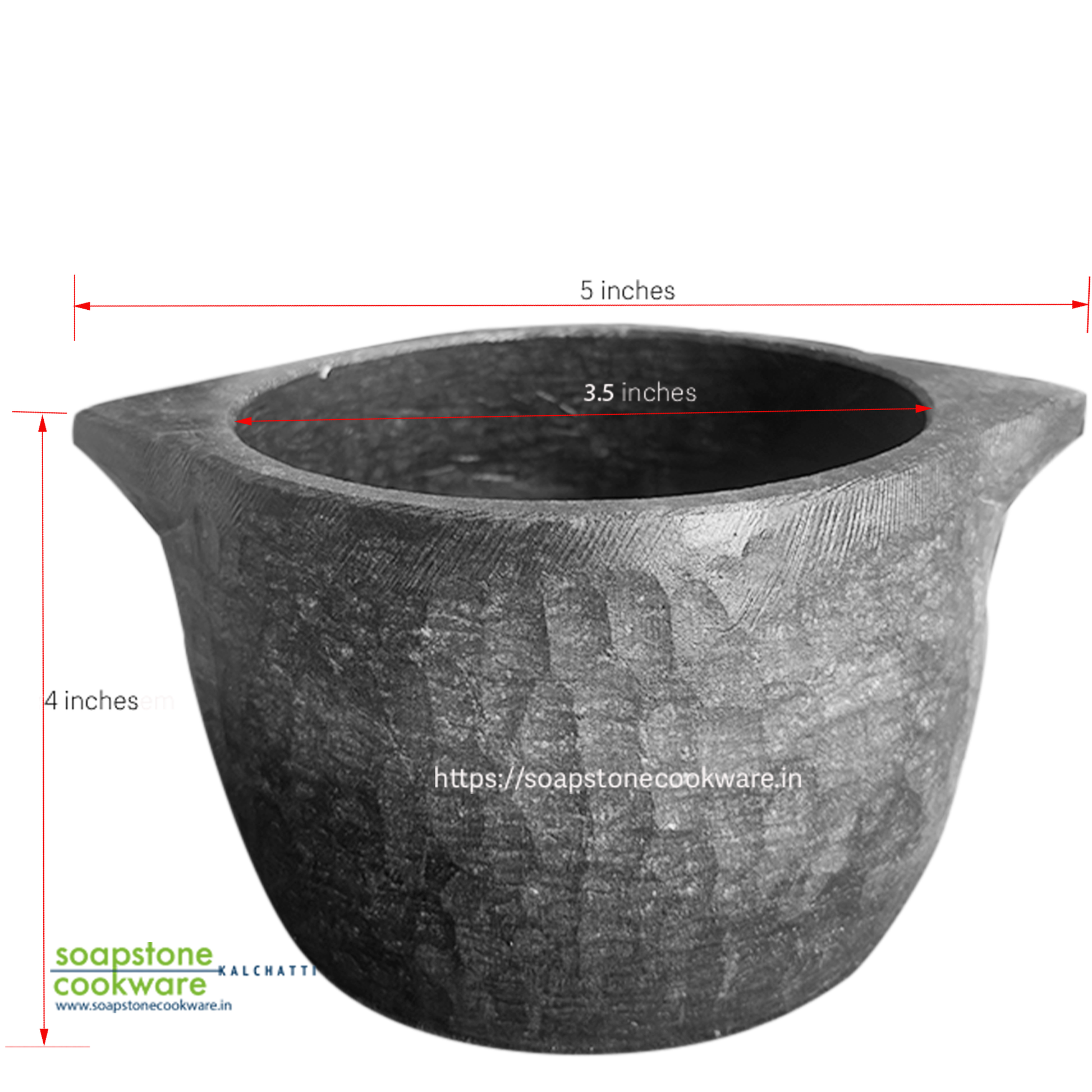 Soapstone, a naturally occurring soft stone in specific geographic areas, is manually mined By The artisans and carved Into cookware. The end to end process of mining, shaping,Carving,smooth finishing and seasoning does not involve any unnatural processing.In addition to the unadulterated natural material, the cookware also comes with high heat retention and the ability to not react with anything (food) While in contact. This is the reason why the food cooked in this traditional stoneware remains warm for a longer time and also has a higher shelf life.