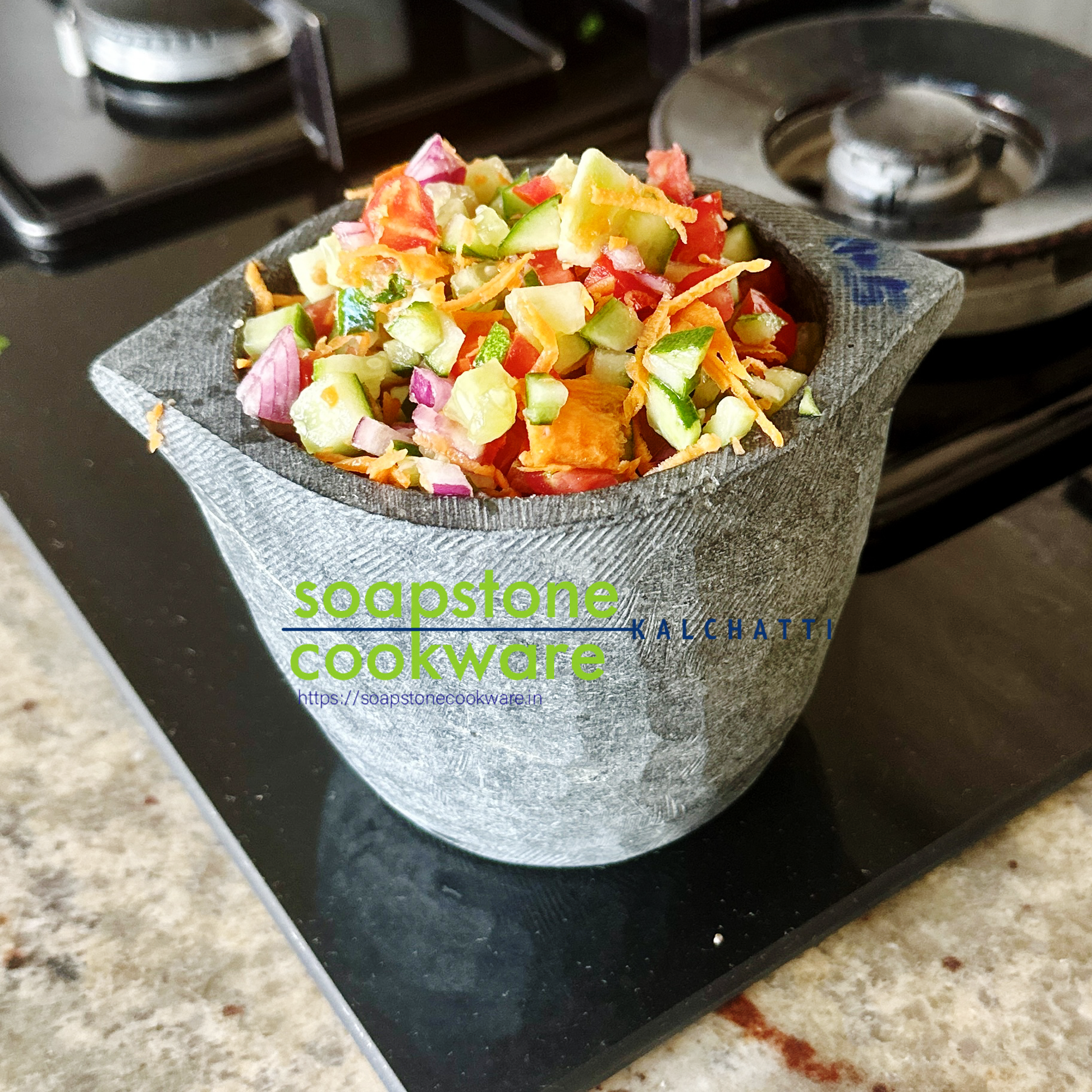 We at Soapstonecookware-Kalchatti,(our Brand)ensure quality control in choosing the right stone, selecting the Right artisan, finishing to the finest level, Season the cookware authentically for 6-8 months and package & deliver with high standards.We have designed the cookware to cook on Gas stove,Coil stove,Hot plate & on firewood.Our cookwares are designed to keep inside the Refrigerator.Our products are sutiable to cook both vegetarian & non-vegetarian dishes.